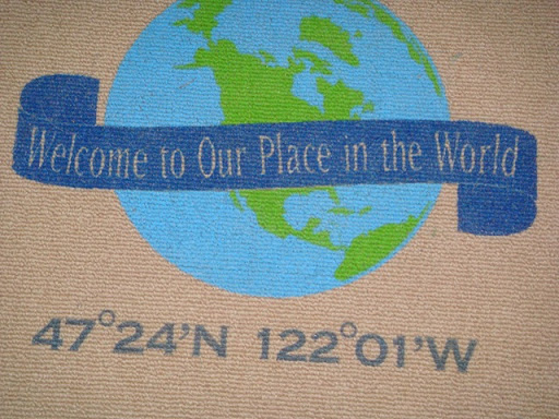 We already did some gift exchanging with our friends, the Perrys and Bennetts. Steve and Tammy Bennett gave us some awesome super-soft sheets for our bed (oooohhhh.... sooooffft...) and Brian and Juliet gave us this cool doormat. Juliet special ordered it, and it actually shows the real coordinates for our house!!
