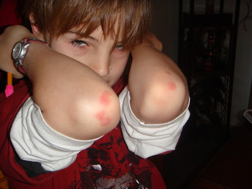 Not to be outdone by Jill's picture of Emmett's puffy eyes, here is a quick pic of Quinn's splotchy elbows (his eyes are a little puffy in the morning).